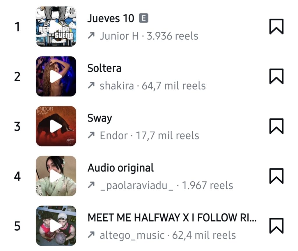Esta semana dentro de los AUDIOS Tendencia en Instagram se encuentra Jueves 10 – Junior H se encuentra en el puesto #1.