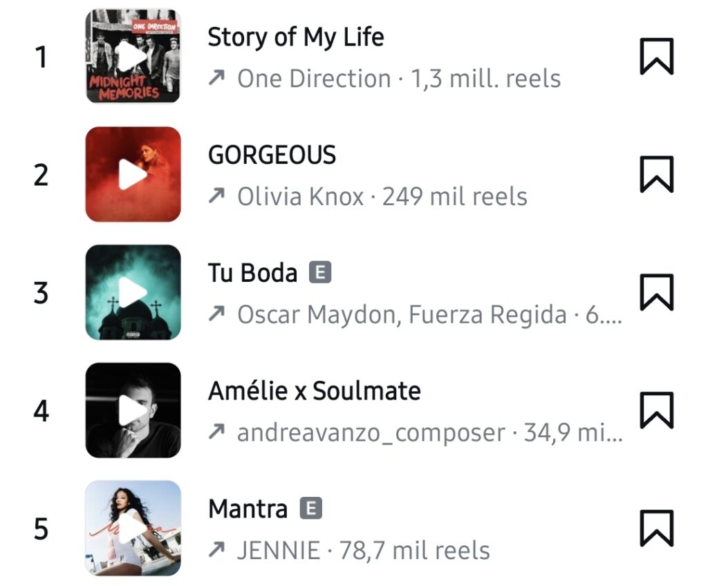 Esta semana dentro de los AUDIOS Tendencia en Instagram se encuentra Story of My Life – One Direction se encuentra en el puesto #1.