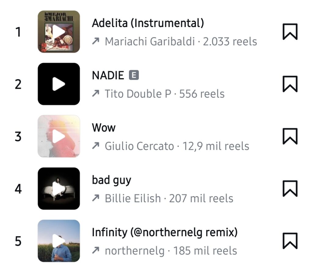 Esta semana dentro de los AUDIOS Tendencia en Instagram se encuentra Adelita (Instrumental) – Mariachi Garibaldi se encuentra en el puesto #1.